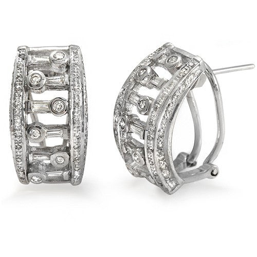 18k White Gold with 0.98ct Round-cut Baguette Diamond Earrings