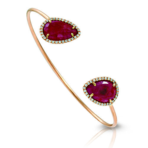 Bangle Bracelet With Pear Shaped Slice Ruby And 0.35ct Round Diamond, 14k Rose Gold.