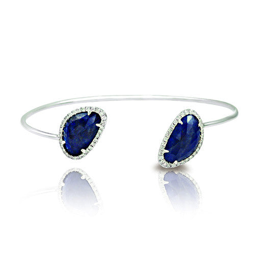 Bangle Bracelet With Slice Sapphire And 0.35ct Round Diamond, 14k White Gold.