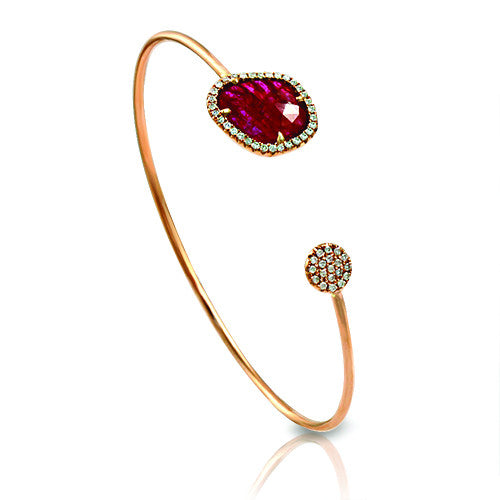 Bangle Cuff Bracelet With Sliced Ruby And 0.36ct Round Diamonds, 14k Rose Gold.
