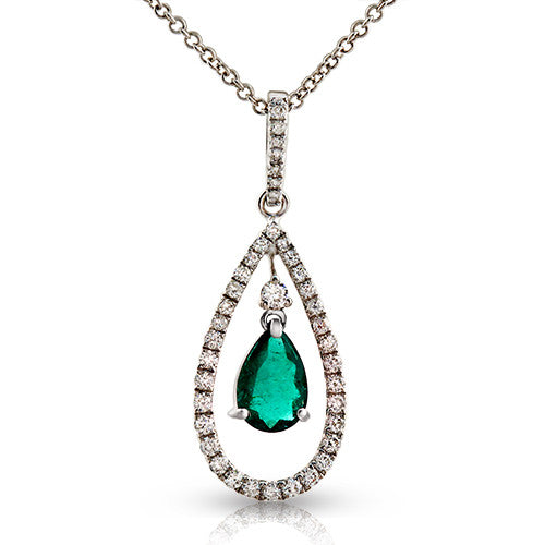 Pear Shape Emerald Teardrop Diamond Necklace In 18k White Gold