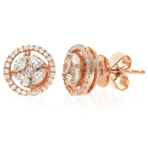 Halo Stud Earrings with Marquise & Round Diamonds in 18k Rose Gold