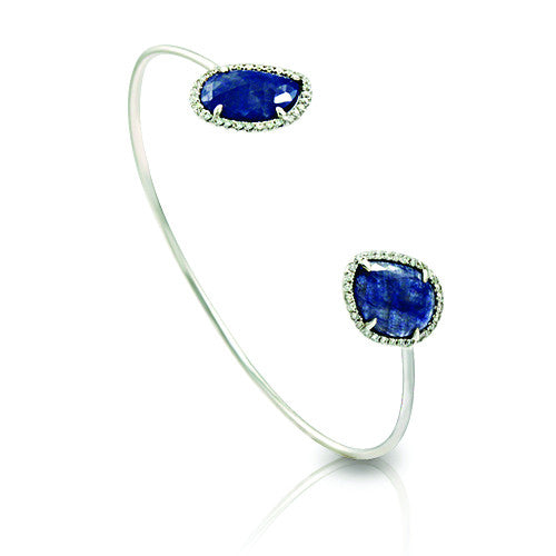 Bangle Cuff Bracelet With Slice Sapphire And 0.35ct Round Diamond,14k White Gold.