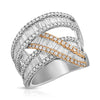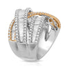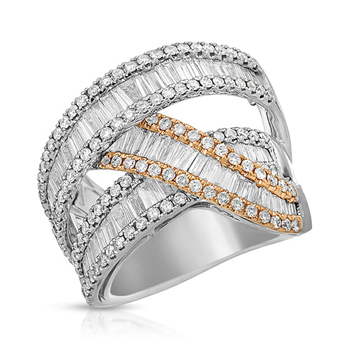 2.91 Carat of Baguette and Round Diamond Multi-Row Crossover Ring in White and Yellow 14k Gold