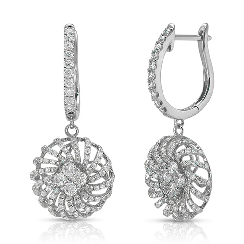 1.90 Carat Swirl Diamond Dangle Earrings 18k White Gold