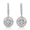 0.40ct Floral Style Diamond Huggie Dangling Earrings 14k White Gold