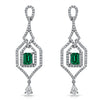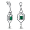 Dangling Earrings with Emerald-cut Emerald accented by Round cut Diamonds in 18k White Gold