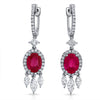 Elegant 2.50 ct Oval Ruby and Diamond Drop Marquise Dangle 18K White Gold Earrings