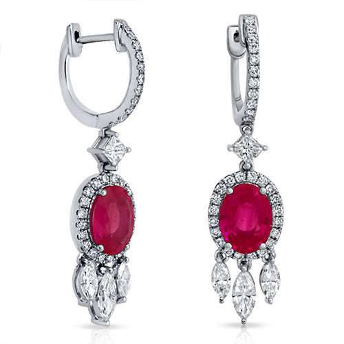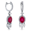 Dangling Oval-cut Ruby Earrings with accented Diamonds in 18k white Gold