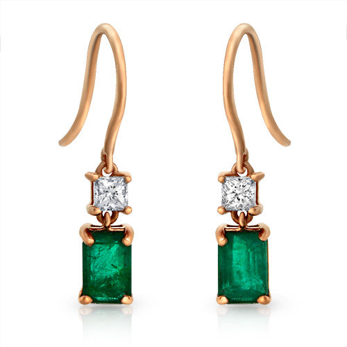 Exquisite Dangling Emerald-cut Earrings with accented of Princess Diamonds in18k Rose Gold