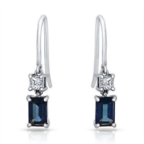 Exquisite Dangling Sapphire Earrings with accented of Princess Diamonds in18k White Gold