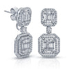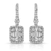1.77 ct. Baguette Halo Diamond Dangling Earrings in 18k Gold