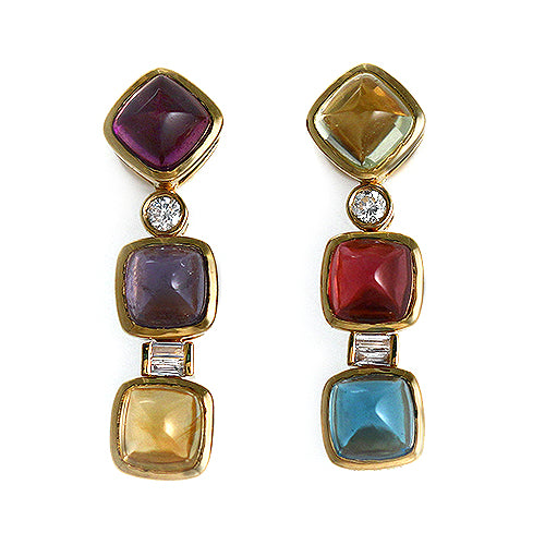 Multi-Color Gemstone Drop Earrings in 18K Yellow Gold