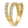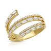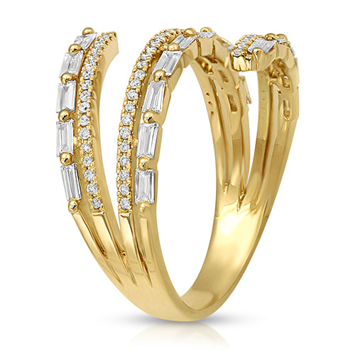 Tripe Row Baugette and Round Diamond Ring 14K Yellow Gold, Wrap Around Ring