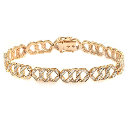 An intriguing attractive design for the modern woman. Round-cut Pave Diamond Bracelet, 18K Yellow Gold with Box Clasp Lock.