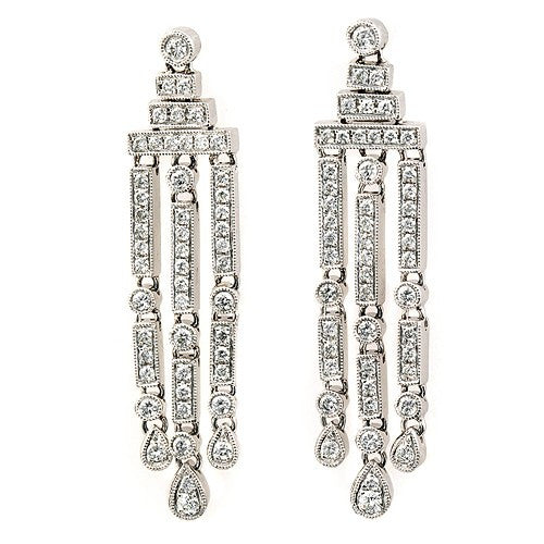 Round&Pear-cut Diamonds totalling 1.03ct Long Chandelier Dangling Earrings 18k White Gold