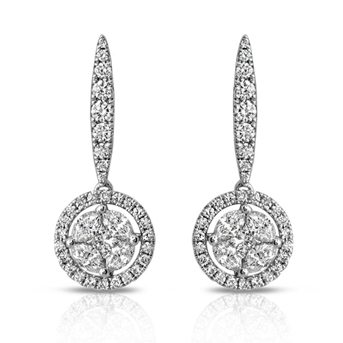 1.49 ct. Halo Diamond Dangling Earrings in 18k Gold