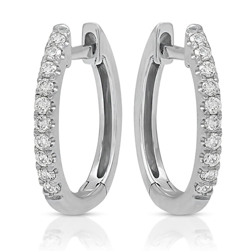 Petite Diamond Huggie Hoop Earrings 14k White Gold
