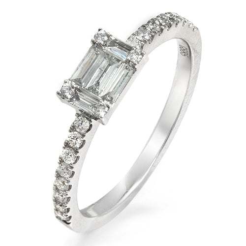 Baguette Diamond Ring With round -cut pave Diamonds in 14k White Gold