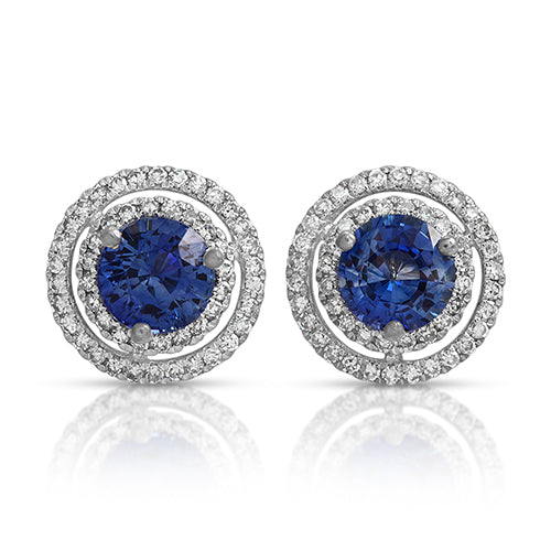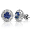 Round Sapphire Gemstone Stud Earrings with Round Diamonds on a 14k White Gold Halo Setting