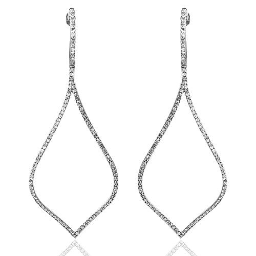 0.58ct Long Hoop Round Diamond Earrings in 18k White Gold