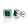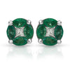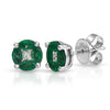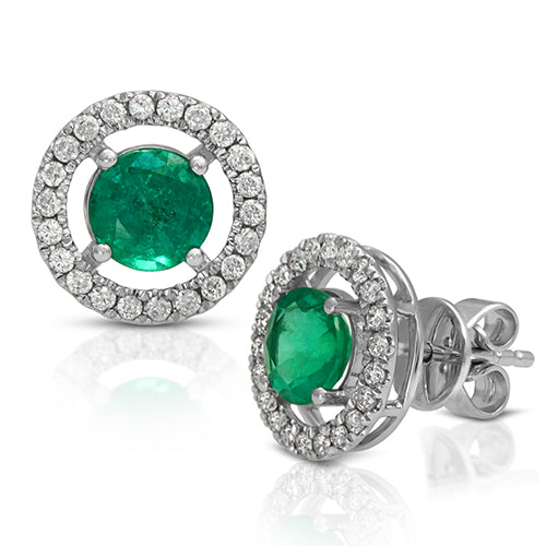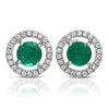 Round Emerald Gemstone Stud Earrings with Round Diamonds on a 14k White Gold Halo Setting