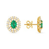 Oval Emerald Gemstone Stud Earrings with Round Diamonds on a 14k Yellow Gold Halo Setting