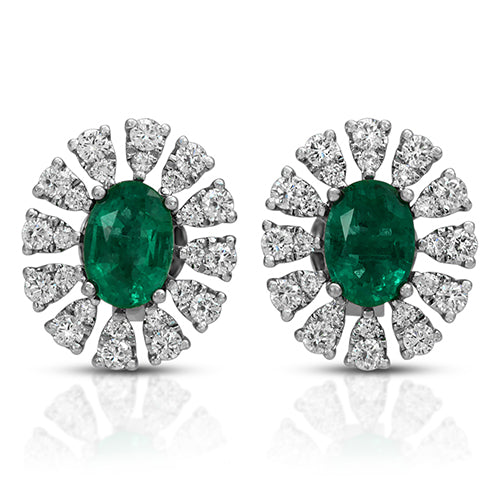 1.52ct Oval Emerald on a Halo Design with 1.46ct Round cut Diamond in 14k White Gold Stud Earrings