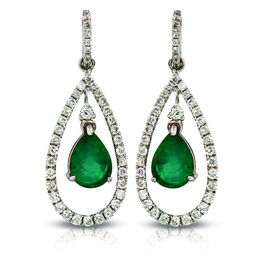 Classic and graceful, these beautiful Pear Teardrop Earrings feature stunning Emeralds and Brilliant Diamonds set in 18K White Gold, ideal for special occasions.