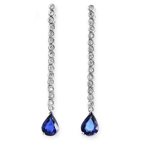 Pear-shaped Blue Sapphire & Round Diamonds Long Dangling Earrings 18k White Gold