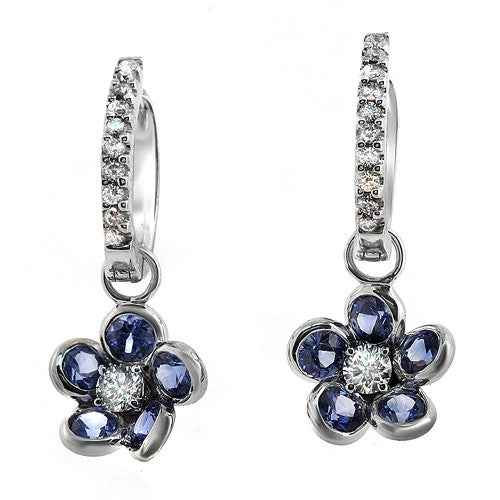 Blue Sapphire & Diamond Floral Earrings, 18K Gold
