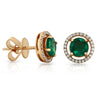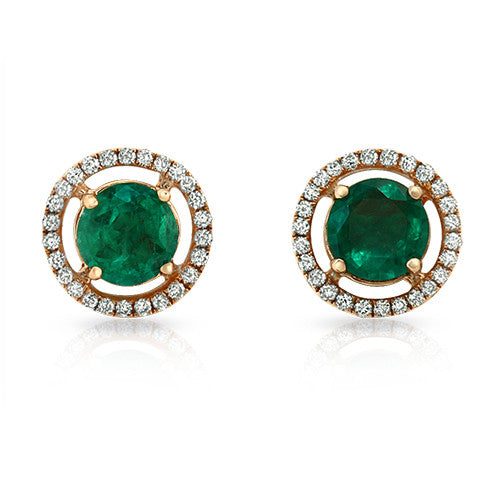 Round Emerald Gemstone Stud Earrings with Round Diamonds on a 18k Rose Gold Halo Setting