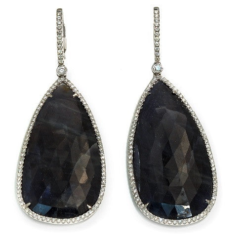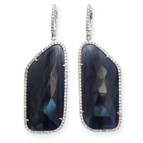 Sapphire Slice & Pave Diamond Dangle Earrings 14k White Gold