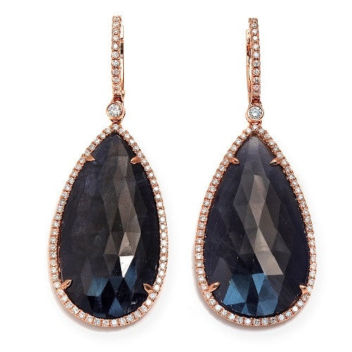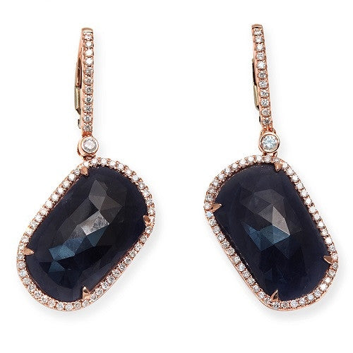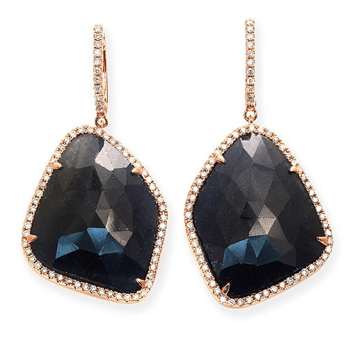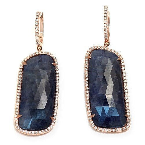 Blue Sapphire Slice & Diamond Earrings, 14k Rose Gold