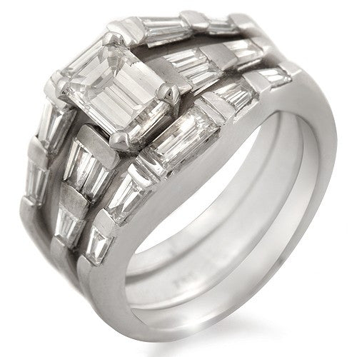 Fantastic Baguette and Tapered Baguette Diamond Stackable Wedding Set of Three Rings, 18K White Gold.