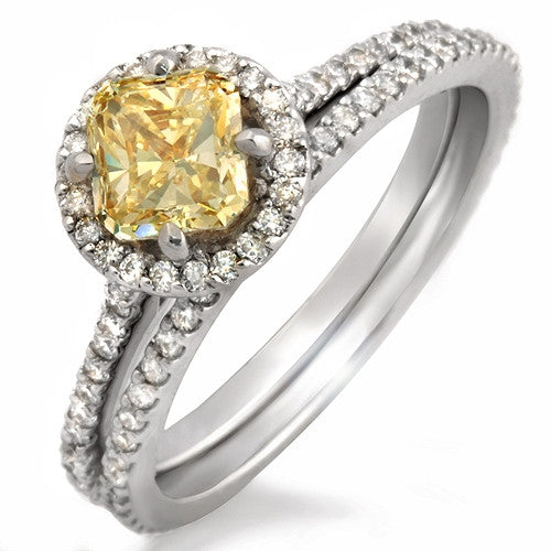 1.60ct Total weight Fancy Yellow Diamond Wedding Set, 18k White Gold