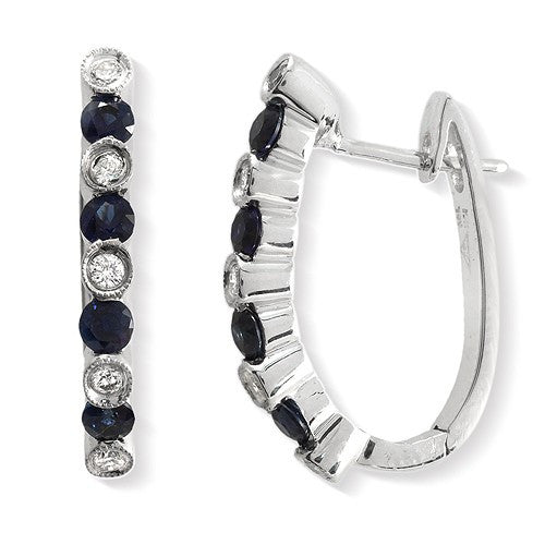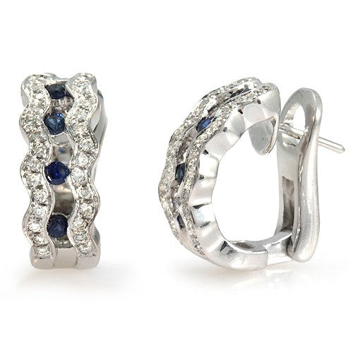 18k White Gold Blue Sapphire Diamond Huggie Earrings