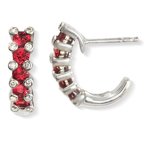 Gorgeous Diamond Huggie Earrings that has a unique hook style, total carat weight of 2.12 ct. featuring five round-cut Pink Sapphire Gemstones, accented with twelve Radiant round-cut White Diamonds in bezel setting framed in 18K White Gold with Post Lock.