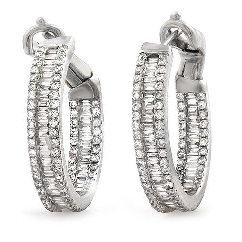 These Classic and Elegant 1.57 ct. t.w. Diamond Huggie Earrings are the perfect pair for any occasions. Gleaming In and Out Baguette and Round-cut Diamond Huggie Earrings framed in 18K White Gold.