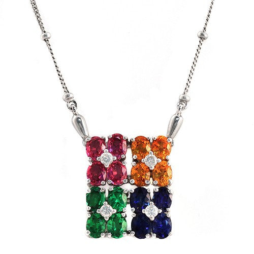 Multicolor Invisible Set Gems & Diamonds Pendant Necklace, 18k White Gold