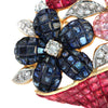 Multicolor Gems & Diamond French Floral Broach, 18k