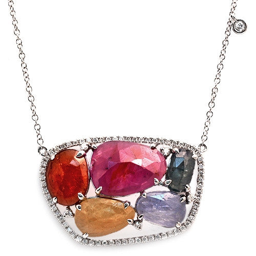 Slice Multicolor Gemstone Necklace With Pave Diamonds, 14k White Gold