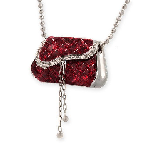 Ruby & Diamond Accented Purse Desgin Pendant Necklace In 18k White Gold
