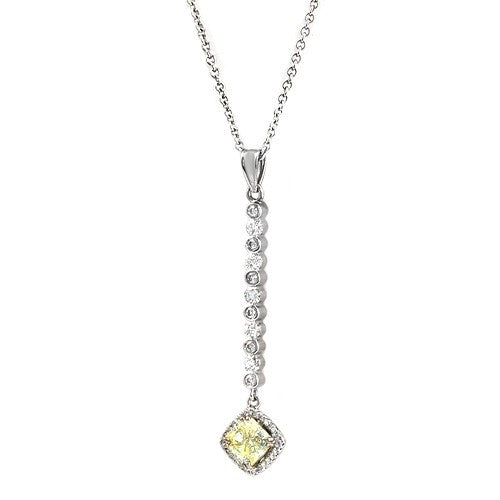 Yellow Diamond Long Pendant Necklace In 18k White Gold
