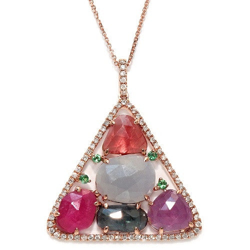 Slice Multicolor Stone Triangular Pendant Necklace, 14k Rose Gold