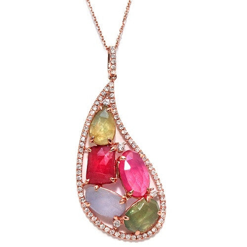 Slice Multicolor Stones Pendant Necklace, 14k Rose Gold