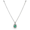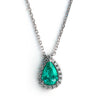 Pear Shaped Emerald and Diamond Drop Floating Pendant in 18k White Gold