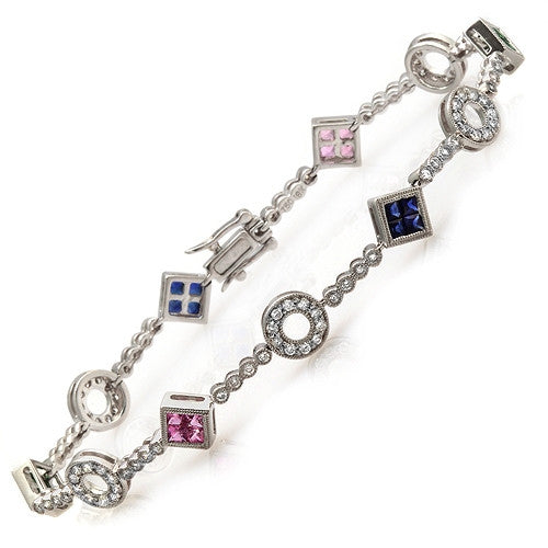 Linking Diamond Bracelet With Blue And Pink Sapphires In 18k White Gold