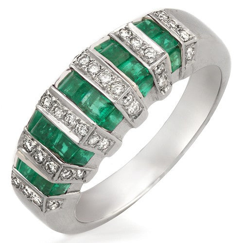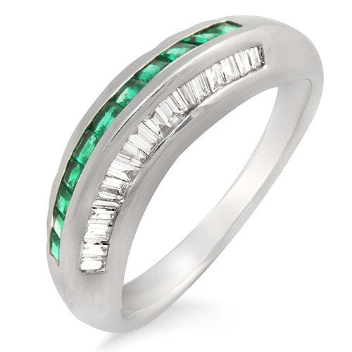 Beautiful Baguette Diamond and Princess-cut Emerald Channel Ring,18K White Gold.