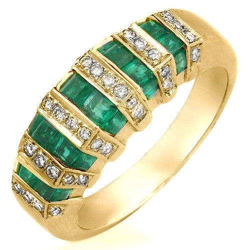 Emerald and Diamond Art Deco Band in 14k Yellow Gold